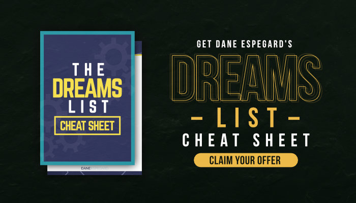 Dane Espegard: You are one of the recommenders of her as well as Mike Munro. And so, with going down this process, she said, “Well, have you ever done a dreams retreat for just anybody, making their own dreams list?” I said, “No. It’s always been in the structure of work or within our family or something like that.” And she said, “Well, what if you did that as a giveaway?” And at first, I was like, I don’t know how that’s going to look. And then, as I thought about it more, I’m like, that’s an awesome idea. So, anybody that purchases three books gets a free ticket to, I believe, the date is October 16th. And we’re not doing the full dreams retreat, but we’re doing the list creation part. We call that dream storming. It’s a three-hour session. So, anybody that purchases three books gets a free ticket to that, to make their first-ever dreams list to hopefully have for the rest of their lives and be able to use as many like you and I have.